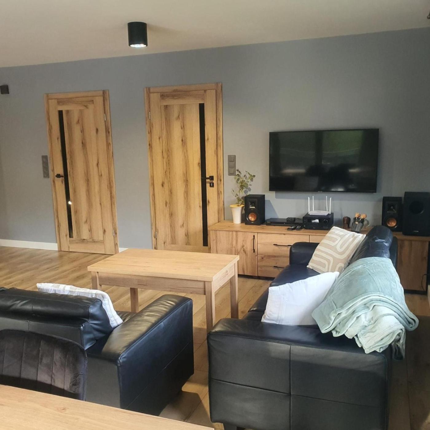 Willa typu Deluxe. The sauna and fireplace are the standout features of this villa. Guests will find a stovetop, a refrigerator, a dishwasher and kitchenware in the well-equipped kitchen. The villa also offers a barbecue. The villa provides a washing machine, a tea and coffee maker, a terrace with garden views as well as a shared bathroom featuring a bath. The unit offers 5 beds. Willa - 9 osobowy. Powierzchnia pokoju ok.: 140 mkw.