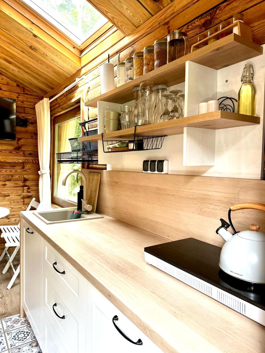 Dom z 2 sypialniami. The sauna is the standout feature of this holiday home. Guests will find a stovetop, a refrigerator, kitchenware and a toaster in the kitchen. The holiday home also comes with a barbecue. The holiday home features air conditioning, a private entrance, a tea and coffee maker as well as a terrace with lake views. The unit has 3 beds. Dom wakacyjny - 4 osobowy. Powierzchnia pokoju ok.: 35 mkw.