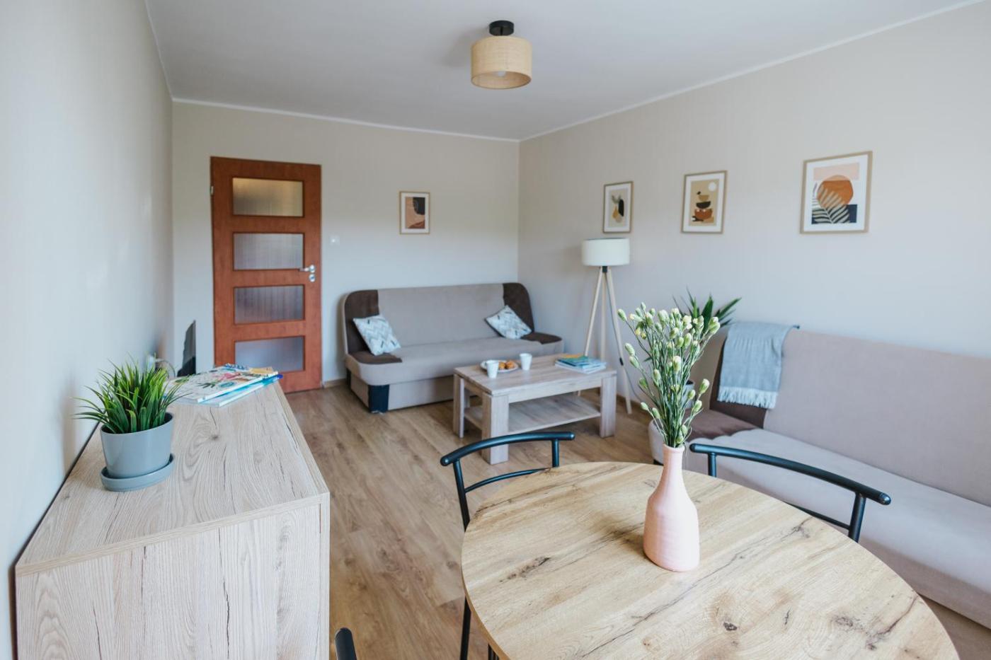 Studio. The studios kitchen is available for cooking and storing food. This studio has a private bathroom, a washing machine and heating. The unit has 2 beds. Studio - 4 osobowy. Powierzchnia pokoju ok.: 32 mkw.