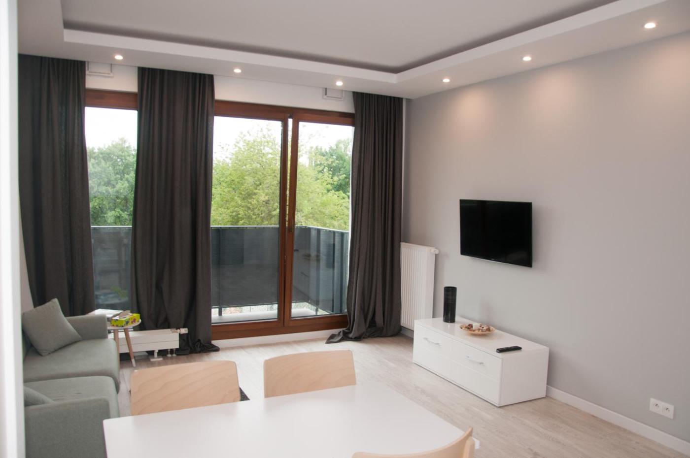 Apartament. Featuring a private entrance, this apartment is comprised of 1 living room, 1 separate bedroom and 1 bathroom with a shower and a hairdryer. In the well-fitted kitchen, guests will find a stovetop, a refrigerator, a dishwasher and kitchenware. Boasting a balcony with garden views, this apartment also offers a washing machine and a flat-screen TV with cable channels. The unit offers 2 beds. Apartament - 10 osobowy. Powierzchnia pokoju ok.: 44 mkw.
