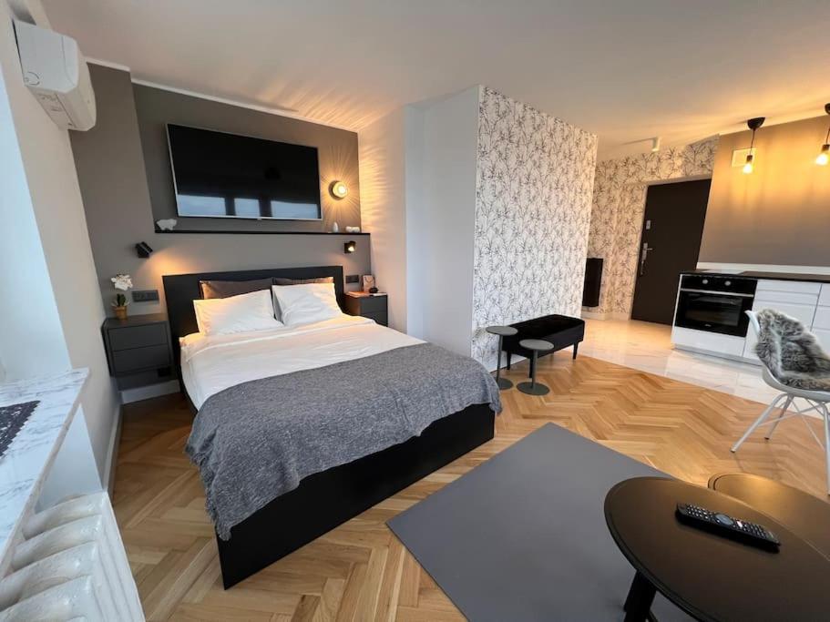 Apartament z 1 sypialnią. The air-conditioned apartment has 1 bedroom and 1 bathroom with a shower and a hairdryer. In the well-equipped kitchenette, guests will find a refrigerator, kitchenware, an oven and an electric kettle. Boasting a balcony with city views, this apartment also offers a seating area and a flat-screen TV. The unit has 2 beds. Apartament - 2 osobowy. Powierzchnia pokoju ok.: 27 mkw.