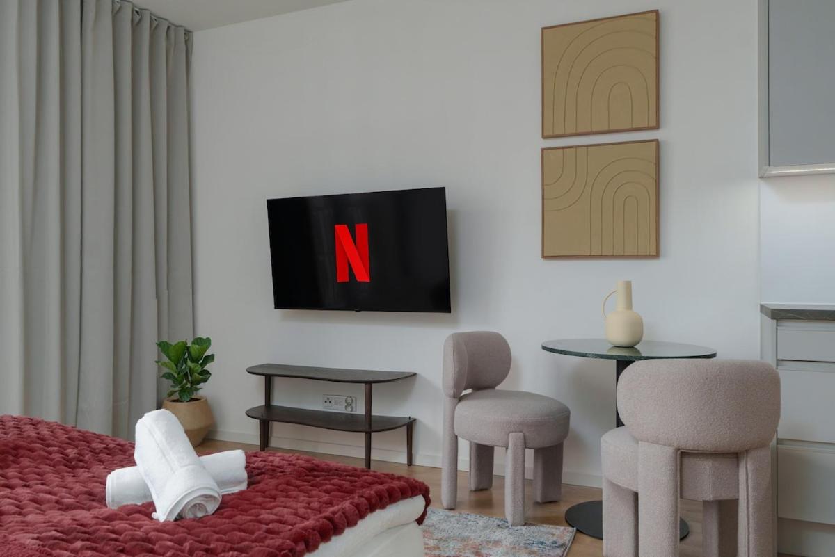 Oferta apartamentu obejmuje sypialnię (1), telewizor z płaskim ekranem oraz klimatyzację.