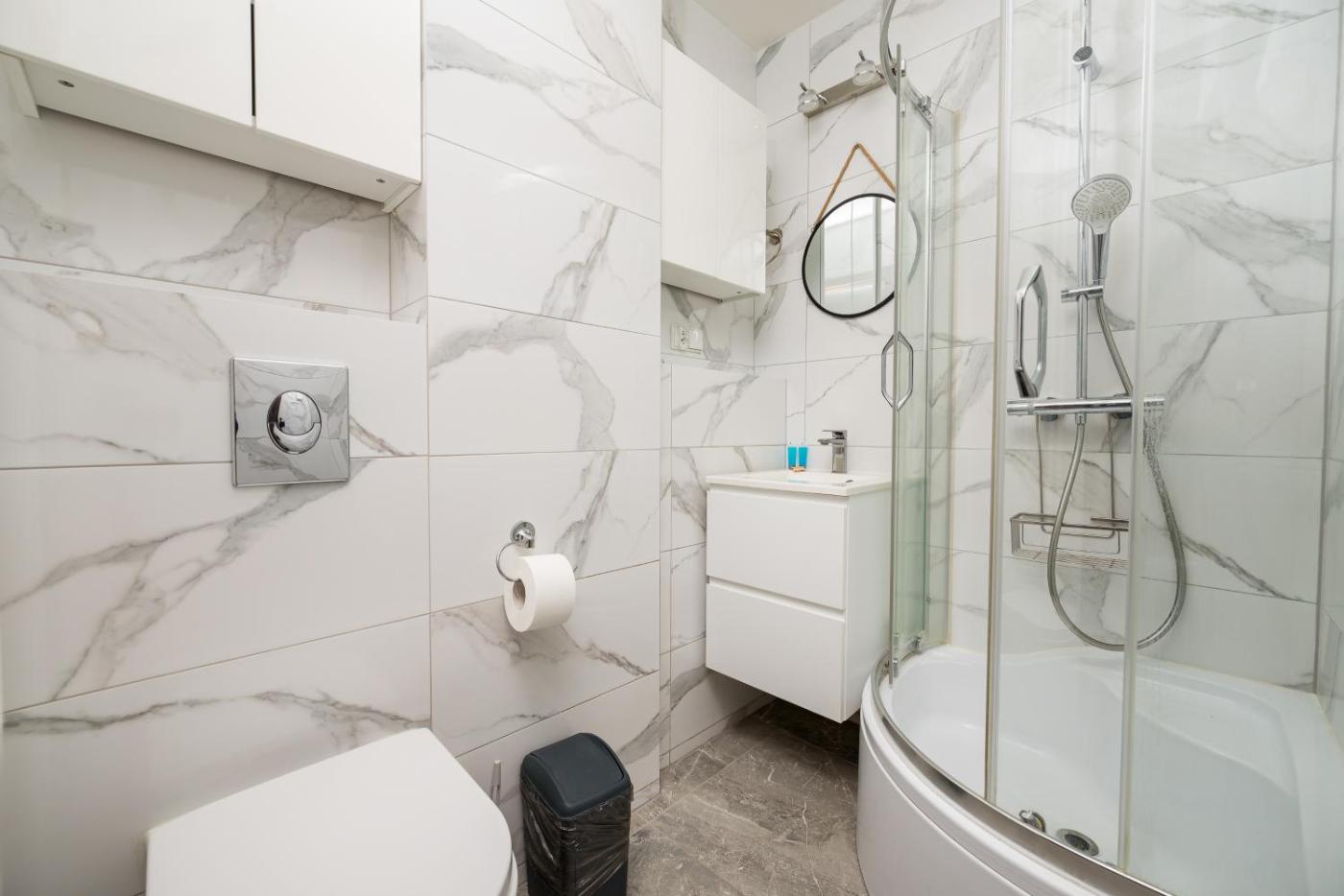 Apartament z 1 sypialnią. Boasting a private entrance, this apartment also features 1 bedroom, a seating area and 1 bathroom with a shower and a hairdryer. In the kitchenette, guests will find a stovetop, a refrigerator, a dishwasher and kitchenware. The apartment features a washing machine, a dining area, a wardrobe, an electric kettle, as well as a flat-screen TV. The unit has 1 bed. Apartament - 2 osobowy. Powierzchnia pokoju ok.: 27 mkw.